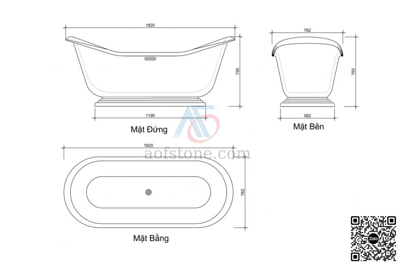 Bồn tắm bằng Đá nhân tạo Solid Surface BAF-03