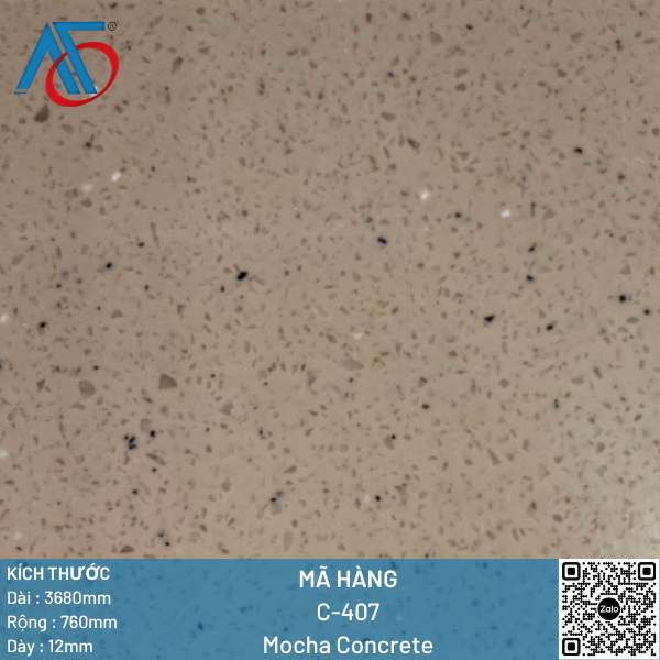 Đá C-407 Mocha Concrete là đá có màu sắc là màu nâu vàng kết hợp với những hạt nhỏ chấm li ti màu xanh và đỏ xen kẽ với nhau tạo nên điểm thu hút cho Đá C-407 Mocha Concrete.