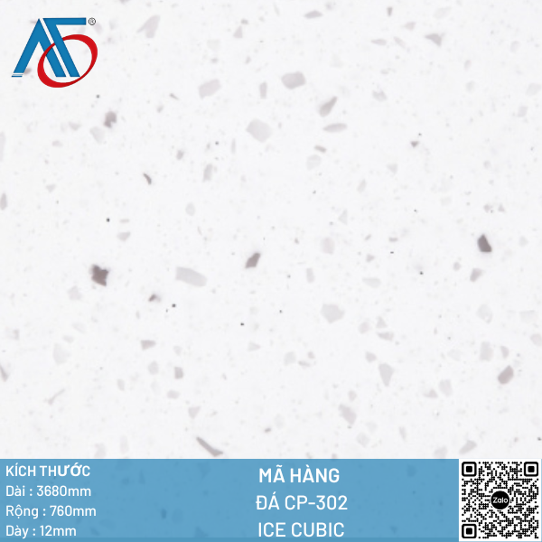 Đá nhân tạo Solid Surface CP-302 ICE CUBIC là vật trang trí nội thất hiện nay đang được rất nhiều khách hàng tin tưởng sử dụng làm: mặt bếp, bàn đảo, quầy lễ tân, mặt lavabo, lavabo đúc nguyên khối, bồn tắm, mặt dựng,…