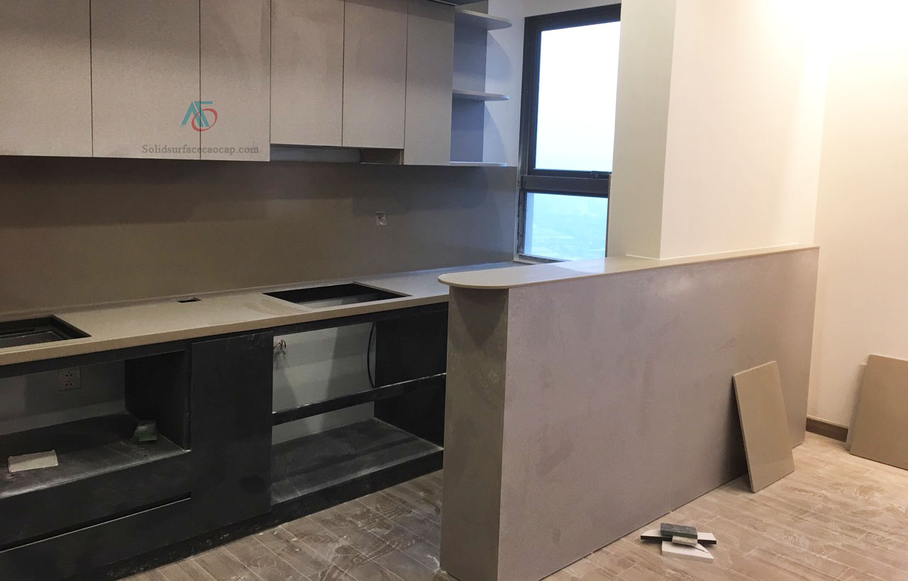 Bếp là nơi thường xuyên tiếp xúc với nước, thực phẩm, gia vị, nhiệt độ,… Đây là những tác nhân gây ra những lỗi thường gặp cho các mặt đá thông thường như: mặt đá bị ố, bị bám dầu mỡ, gia vị mà lau chùi không được, mặt đá bị thấm nước tạo ra những vết thấm loang trên mặt đá,… Đối với dá Solid Surface bạn sẽ không phải lo những vấn để trên bởi đá không bị thấm nước và không bám dầu mỡ.