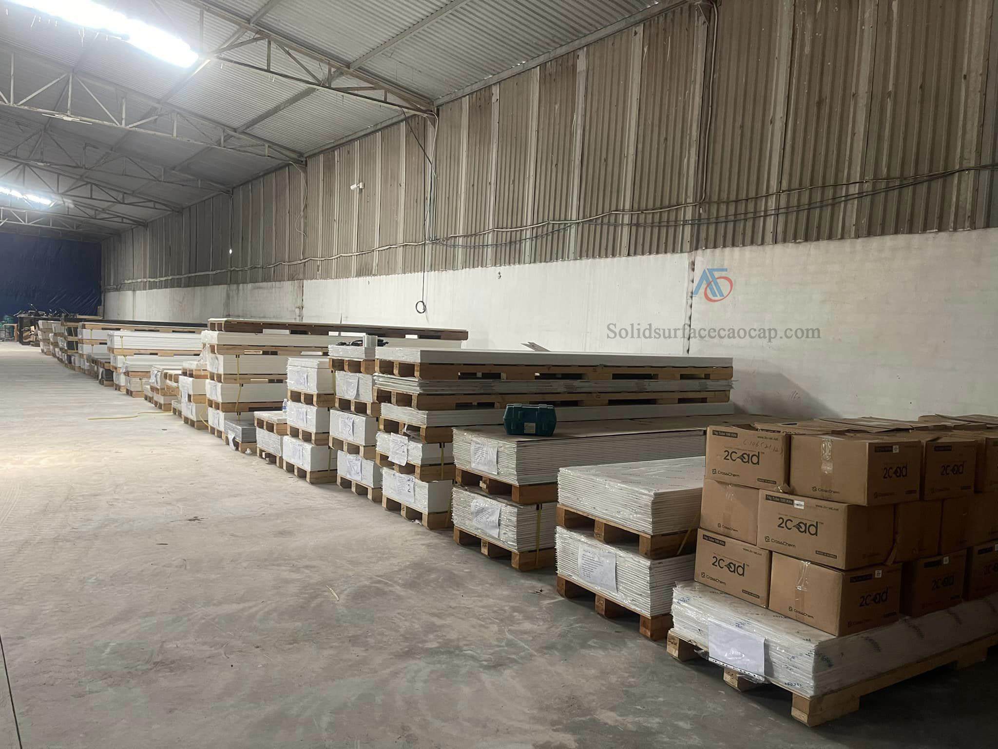 Xuất xứ đá: Đá Solid Surface G-404 Aspen Concrete được nhập khẩu trực tiếp từ nhà máy ở Hàn Quốc. Thương hiệu đá G-404 Aspen Concrete là Milleon. Đá Solid Surface có đầy đủ giấy tờ về các chứng chỉ xuất xử CO,CQ, các bản test đá.