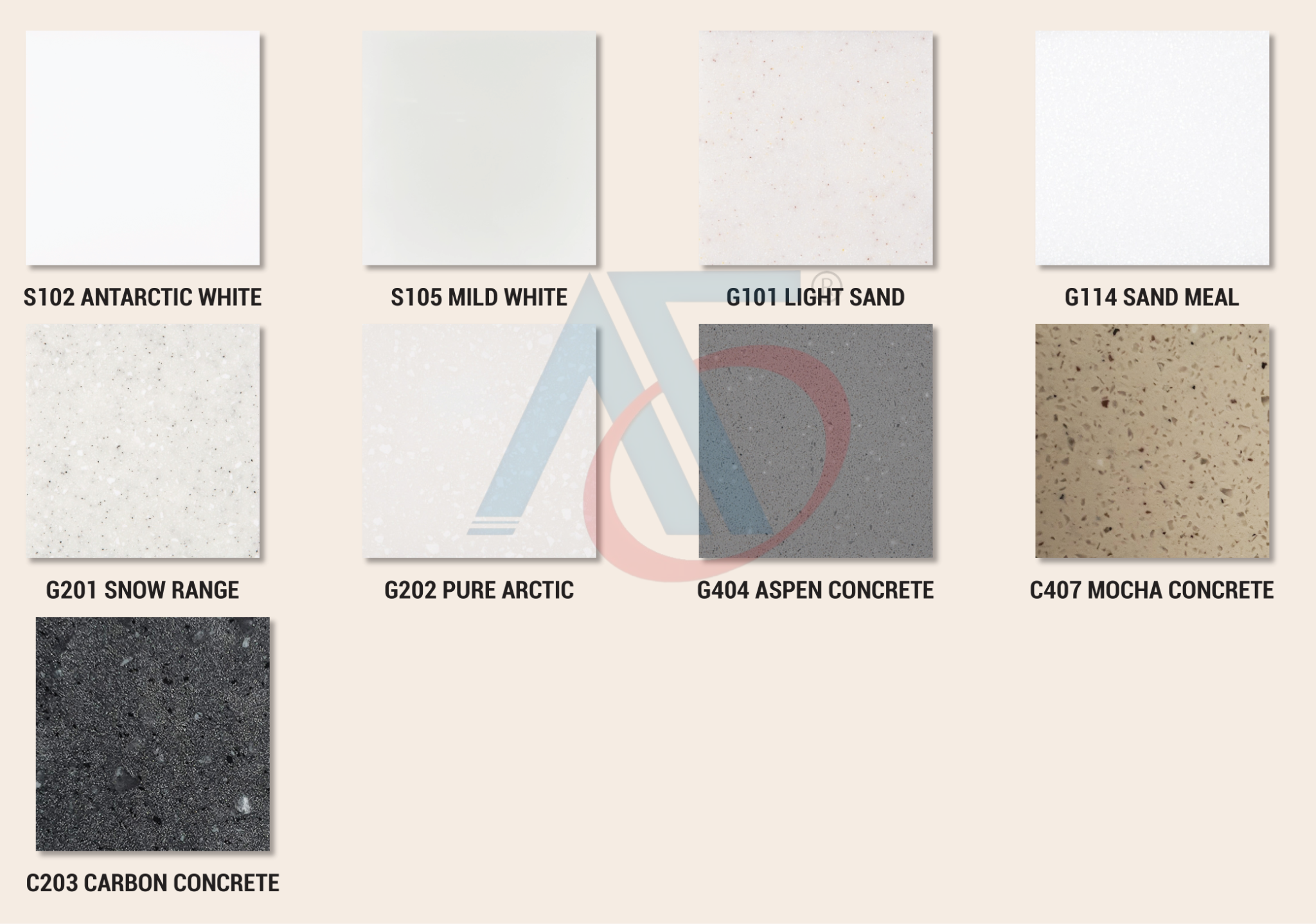 Đá Solid Surface G-404 Aspen Concrete có đầy đủ những ưu điểm vượt trội của đá Solid Surface.