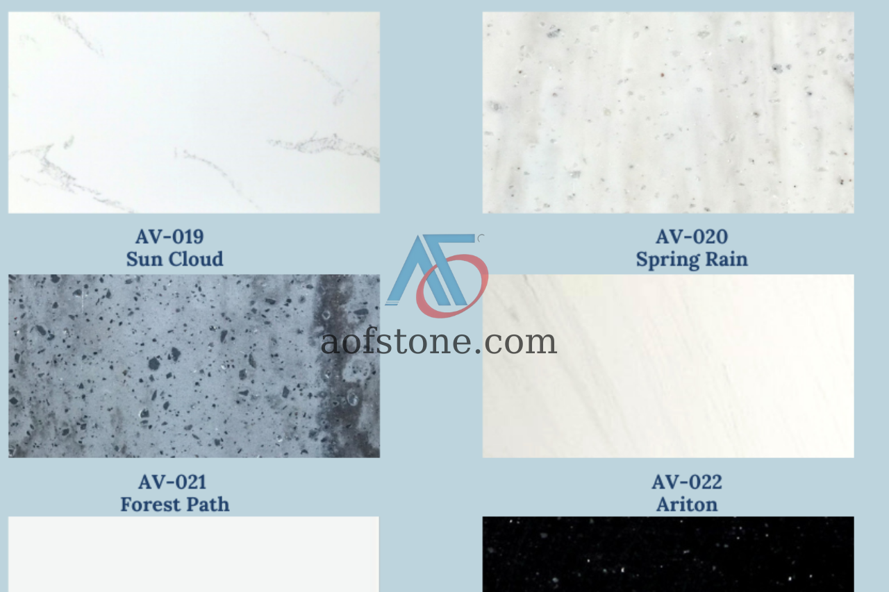 Đá nhân tạo Solid Surface AV-020 có thành phần tạo nên là 80% keo Acylic và 20% còn lại là bột đá và chất tạo màu.