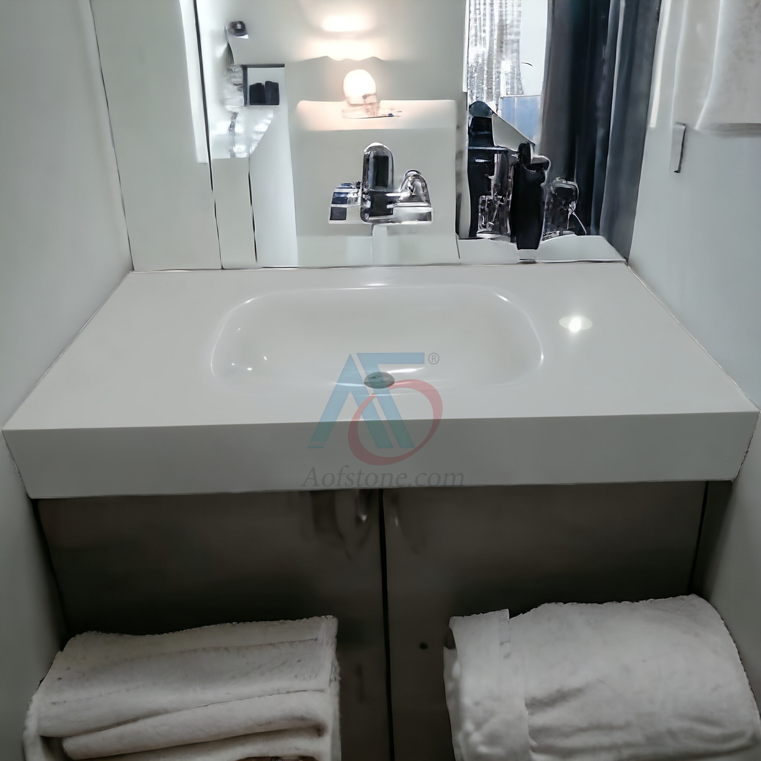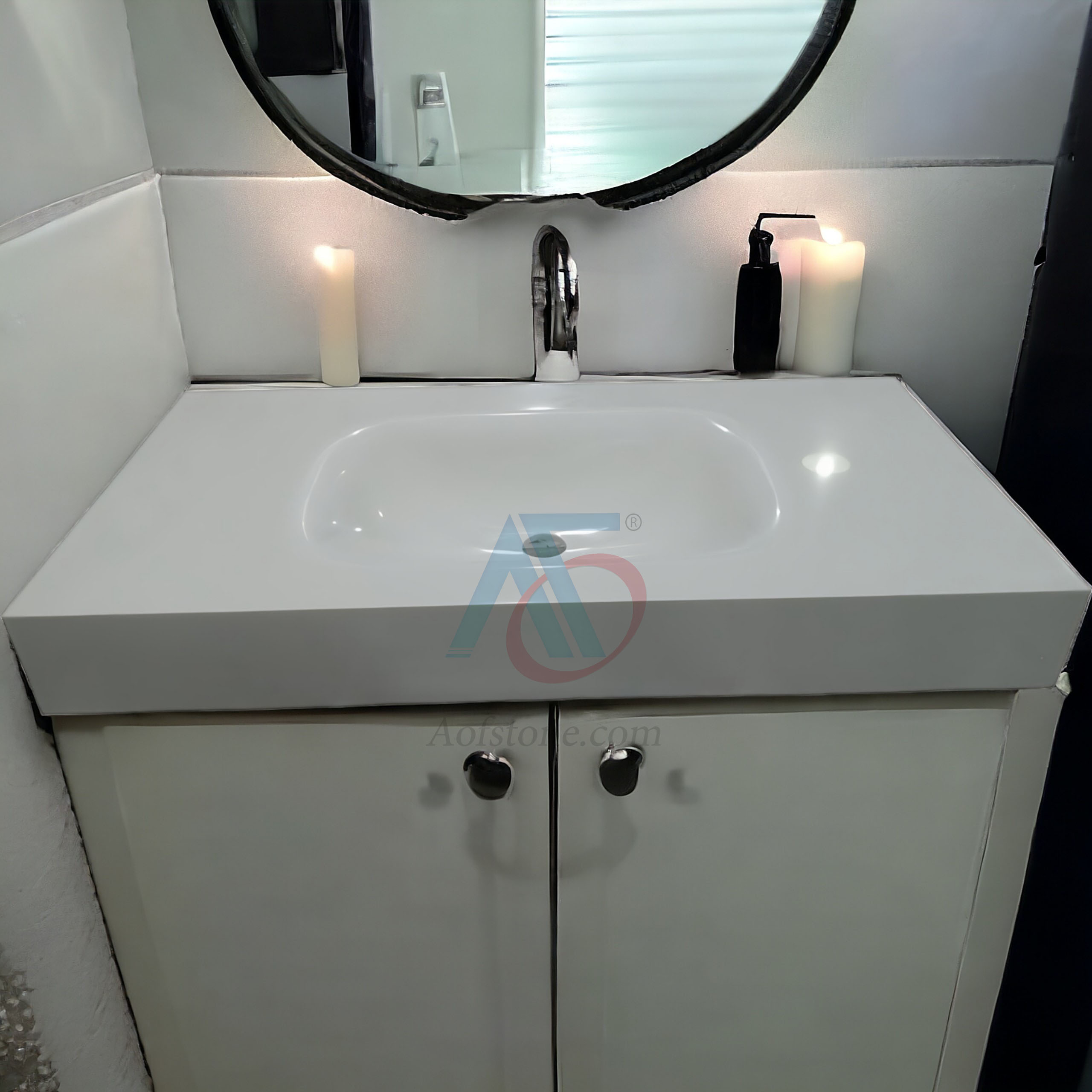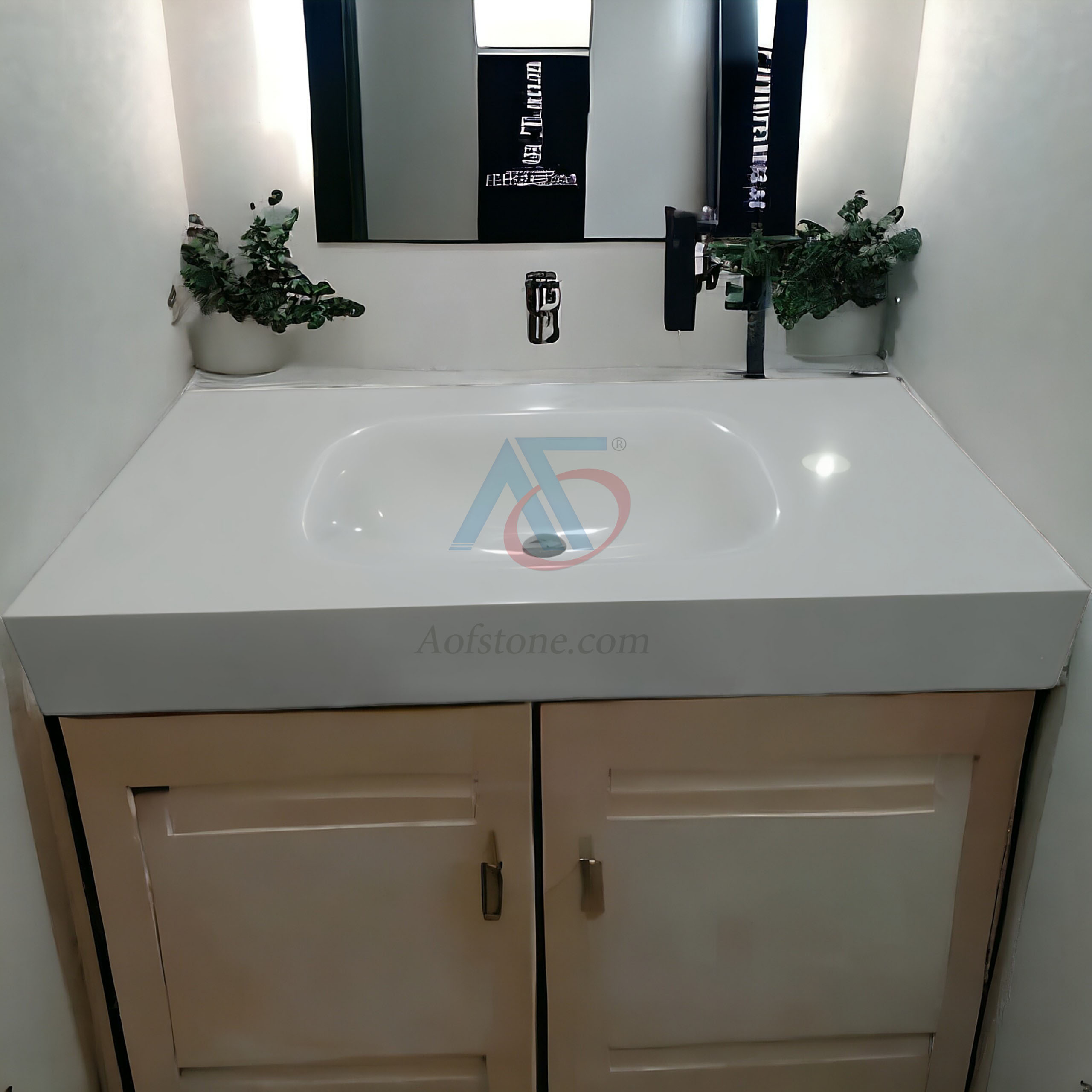 Mẫu chậu rửa mặt bằng đá Solid Surface đẹp âm bàn với thiết kế tiết kiệm diện tích thường được ứng dụng cho những không gian nhỏ. Ngay cả không gian nhà bếp, bạn cũng có thể lắp đặt loại chậu này dùng để vệ sinh các vật dụng. Mẫu chậu rửa mặt này thường được tích hợp với phần tủ hoặc ngăn kéo ở bên dưới. Phần mặt bàn rộng rãi nên bạn có thể để các đồ dùng cần thiết ở trên.