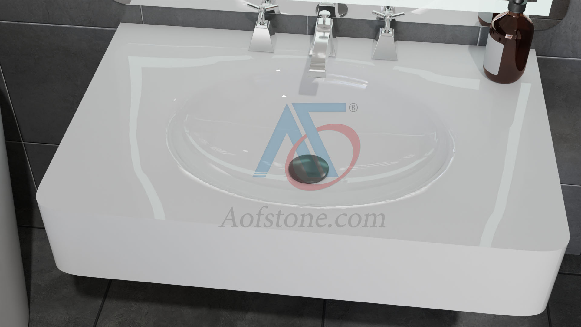 Mẫu chậu rửa mặt bằng đá Solid Surface đẹp âm bàn với thiết kế tiết kiệm diện tích thường được ứng dụng cho những không gian nhỏ. Ngay cả không gian nhà bếp, bạn cũng có thể lắp đặt loại chậu này dùng để vệ sinh các vật dụng. Mẫu chậu rửa mặt này thường được tích hợp với phần tủ hoặc ngăn kéo ở bên dưới. Phần mặt bàn rộng rãi nên bạn có thể để các đồ dùng cần thiết ở trên.