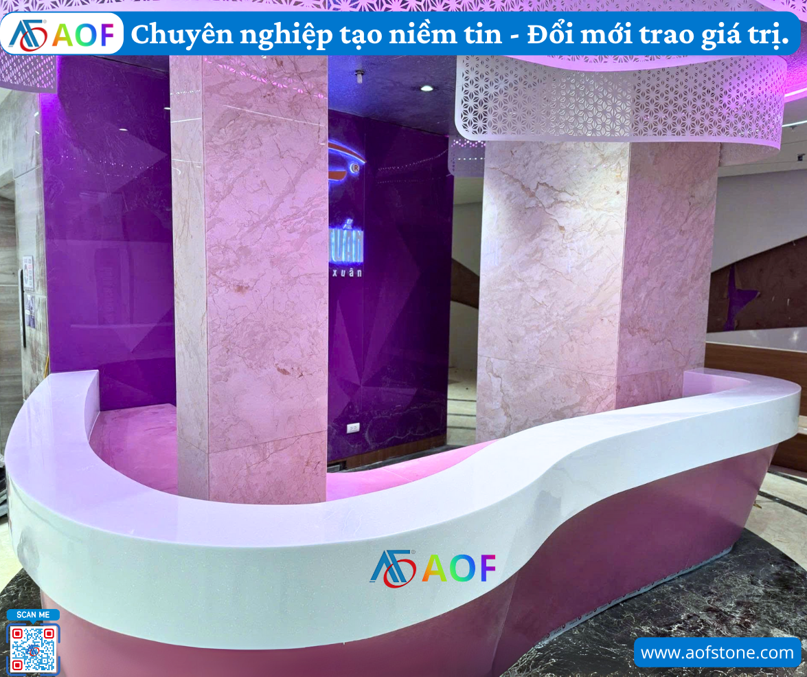 Tóm lại, công nghệ sản xuất tiên tiến và khả năng tùy biến đa dạng của quầy lễ tân Solid Surface lượn sóng đã tạo ra một sản phẩm đẳng cấp trong thiết kế nội thất hiện đại. Dịch vụ bàn giao quầy lễ tân solid surface lượn sóng ở Cao Bằng của Công ty AOF chắc chắn sẽ đáp ứng tốt nhất nhu cầu và yêu cầu của mọi khách hàng.