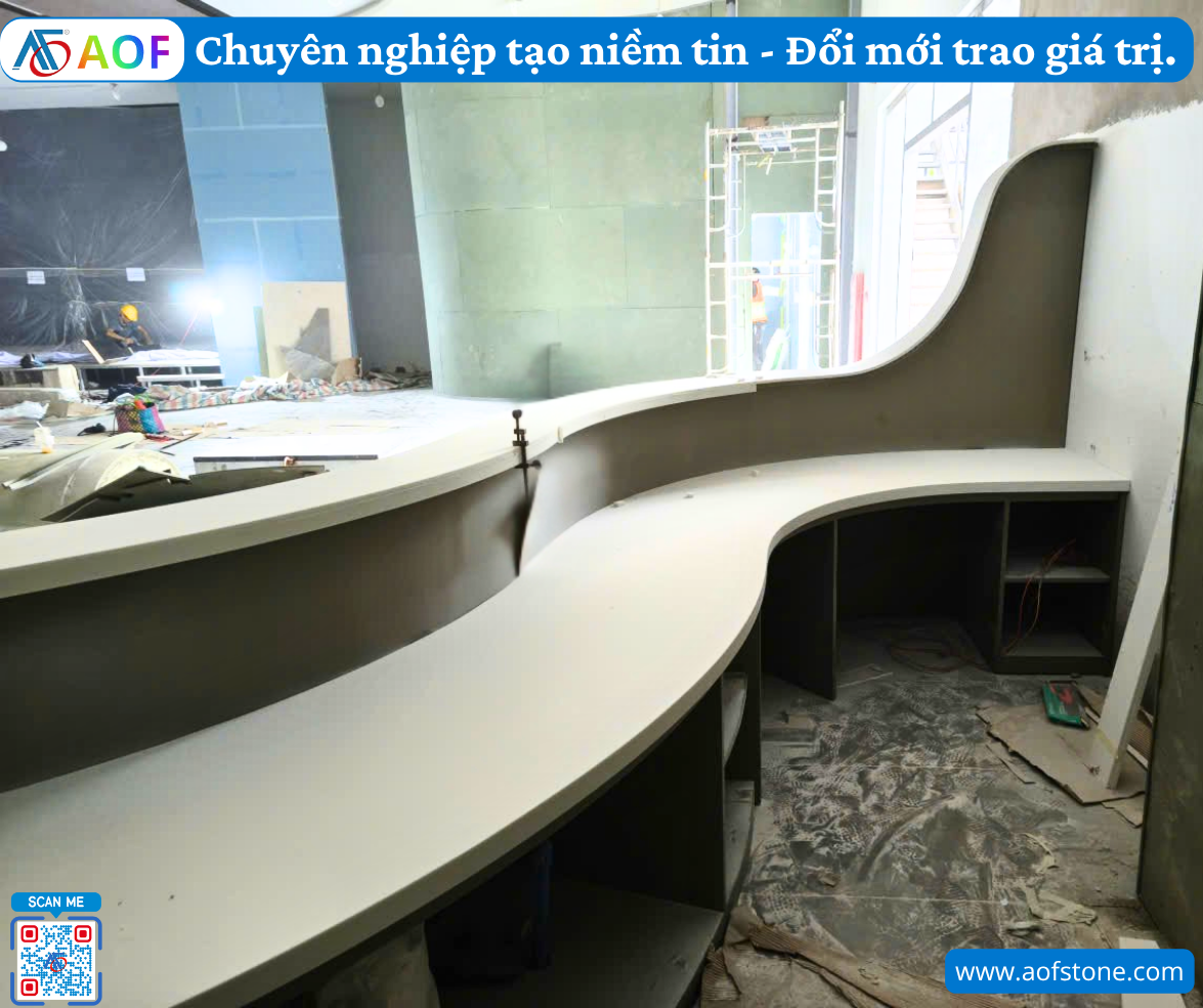 Như vậy, với quy trình thi công, kiểm định chất lượng và cam kết hậu mãi rõ ràng, Công ty AOF đảm bảo rằng mỗi dự án bàn giao quầy lễ tân solid surface lượn sóng ở Cao Bằng đều đạt tiêu chuẩn cao nhất. Sự hài lòng của khách hàng là ưu tiên hàng đầu của chúng tôi, và chúng tôi luôn sẵn sàng đồng hành cùng khách hàng để mang lại giá trị tốt nhất.