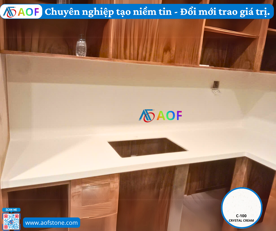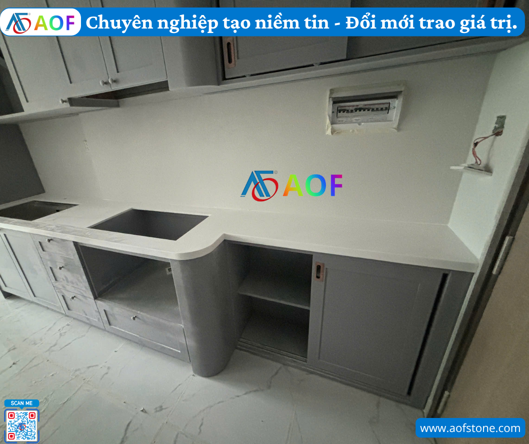 Để có được báo giá thi công bếp đá solid surface liền mặt tại Huế chính xác nhất, bạn nên tìm hiểu kỹ các yếu tố ảnh hưởng đến giá cả như kích thước, thiết kế, và loại đá sử dụng. Một số đơn vị thi công uy tín như Công ty AOF sẽ cung cấp báo giá chi tiết theo từng dự án, giúp bạn có cái nhìn tổng thể về chi phí cần đầu tư.