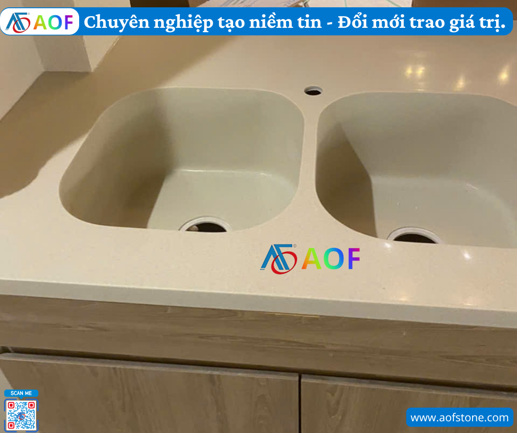 Solid surface là vật liệu nhân tạo, thường bao gồm bột đá tự nhiên và nhựa acrylic hoặc polyester. Với cấu trúc đồng nhất, vật liệu này mang lại vẻ đẹp sang trọng và hiện đại cho không gian bếp, phòng tắm. Một trong những ưu điểm của solid surface là dễ dàng khắc phục các vết xước hoặc mẻ mà không cần thay thế toàn bộ bồn. Tuy nhiên, việc tiếp xúc thường xuyên với bụi bẩn và chất lỏng có thể gây ra tình trạng ố vàng, nhất là ở những khu vực có độ ẩm cao như bồn rửa.