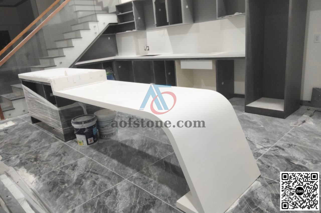 Nội thất AOF chuyên thi công hoàn thiện các sản phẩm về đá Solid Surface làm mặt đá lavabo, chậu rửa Lavabo, mặt bếp, bàn đảo, quầy lễ tân,bồn tắm,…Các sản phẩm về đá nhân tạo solid surface luôn được đảm bảo về chất lượng, màu sắc sang trọng, thi công nhanh chóng, bảo hành sản phẩm 5 năm.