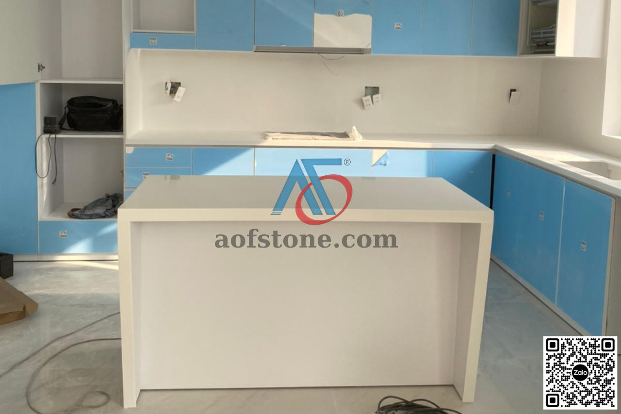 Nội thất AOF chuyên thi công hoàn thiện các sản phẩm về đá Solid Surface làm mặt đá lavabo, chậu rửa Lavabo, mặt bếp, bàn đảo, quầy lễ tân,bồn tắm,…Các sản phẩm về đá nhân tạo solid surface luôn được đảm bảo về chất lượng, màu sắc sang trọng, thi công nhanh chóng, bảo hành sản phẩm 5 năm.