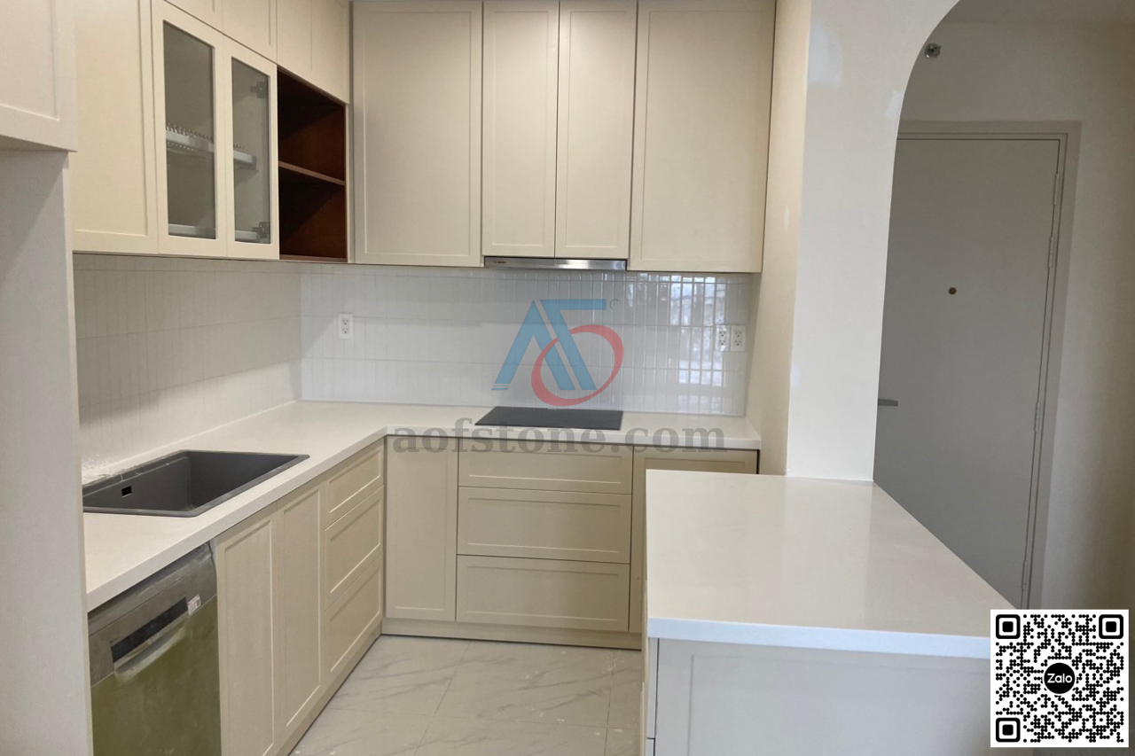 - Quartz: độ bền cao, không thấm nước, dễ vệ sinh và đa dạng về màu sắc.
