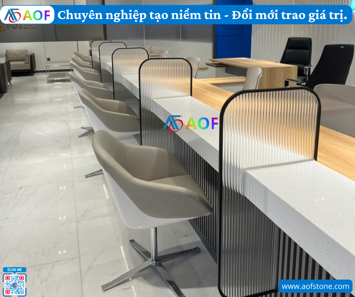 Quy trình thiết kế và thi công chuyên nghiệp không chỉ đảm bảo hoàn thiện quầy giao dịch solid surface tại Quảng Ninh mà còn là yếu tố quan trọng trong việc xây dựng hình ảnh doanh nghiệp. Một không gian giao dịch đẹp và tiện lợi sẽ gây ấn tượng tốt với khách hàng, góp phần nâng cao giá trị thương hiệu. Hãy đến với AOF để trải nghiệm dịch vụ hoàn hảo này.