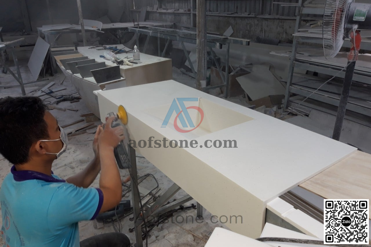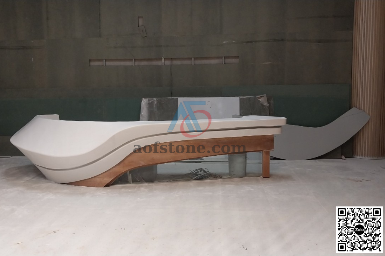 Nội thất AOF chuyên thi công hoàn thiện các sản phẩm về đá Solid Surface làm mặt đá lavabo, chậu rửa Lavabo, mặt bếp, bàn đảo, quầy lễ tân,bồn tắm,…Các sản phẩm về đá nhân tạo solid surface luôn được đảm bảo về chất lượng, màu sắc sang trọng, thi công nhanh chóng, bảo hành sản phẩm 5 năm.