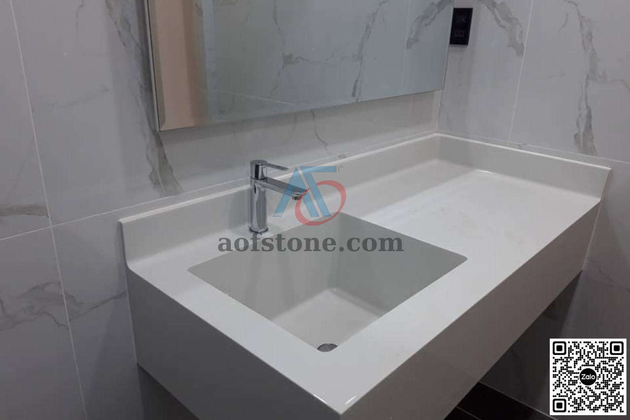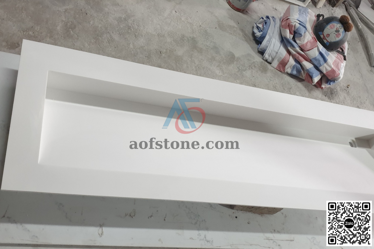 Nội thất AOF chuyên thi công hoàn thiện các sản phẩm về đá Solid Surface làm mặt đá lavabo, chậu rửa Lavabo, mặt bếp, bàn đảo, quầy lễ tân,bồn tắm,…Các sản phẩm về đá nhân tạo solid surface luôn được đảm bảo về chất lượng, màu sắc sang trọng, thi công nhanh chóng, bảo hành sản phẩm 5 năm.