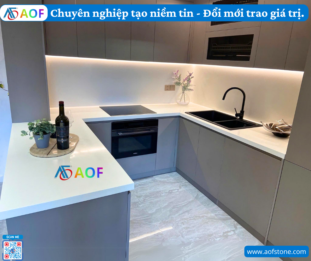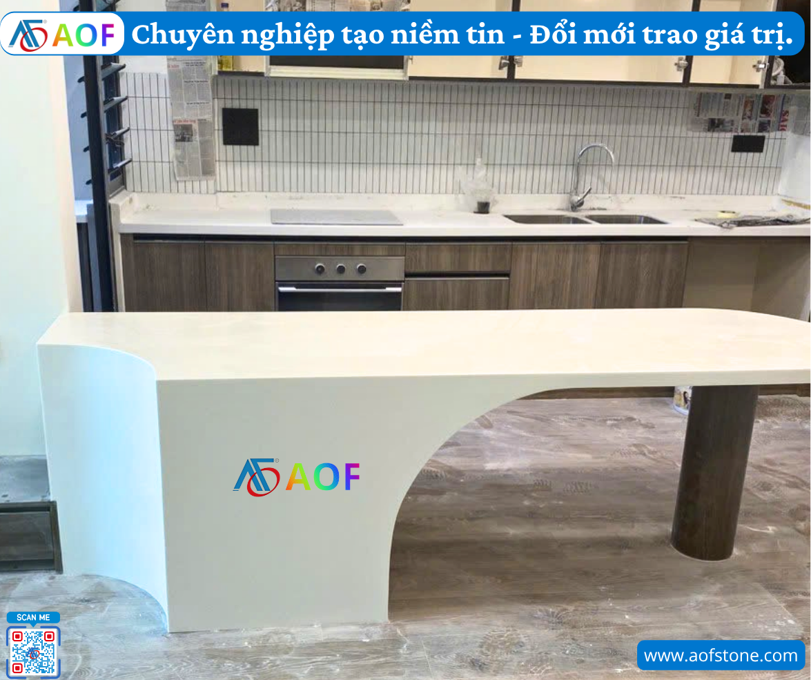 Tại Bình Dương, Công ty AOF cung cấp nhiều mẫu bếp đá solid surface liền mặt hiện đại, đáp ứng mọi nhu cầu về thẩm mỹ và công năng. Đến với AOF, bạn có thể nhận được sự tư vấn tận tình để tìm ra mẫu bếp hoàn hảo nhất cho không gian nhà mình.
