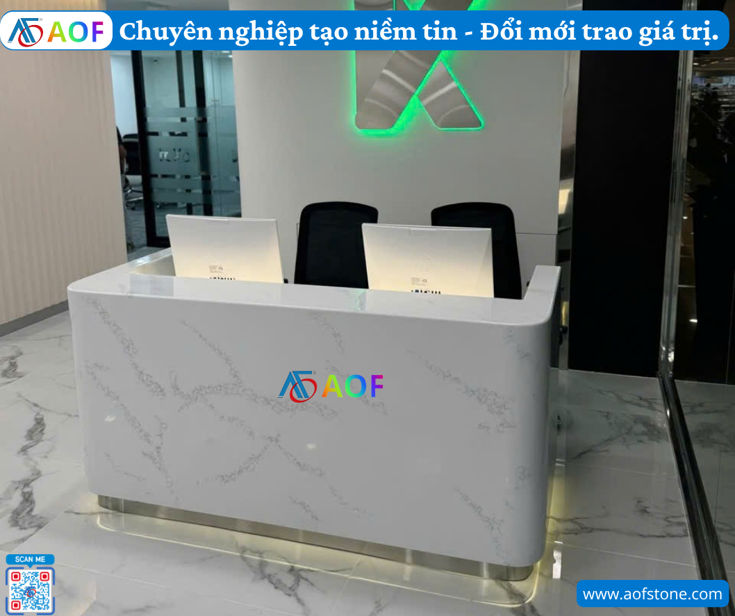 Tóm lại, mẫu thiết kế quầy solid surface đẹp cho văn phòng Nghệ An không chỉ mang đến những ưu điểm vượt trội về tính năng mà còn tạo nên phong cách thiết kế hiện đại, giúp xây dựng ấn tượng chuyên nghiệp cho không gian làm việc. Với sự đa dạng trong màu sắc và chất liệu, cùng những tính năng vượt trội, mẫu quầy này thể hiện rõ ràng lý do tại sao nó đang trở thành xu hướng lựa chọn hàng đầu cho các văn phòng hiện đại. Hãy để công ty AOF trở thành đối tác tin cậy của bạn trong việc thiết kế và thi công quầy solid surface cho không gian làm việc lý tưởng!