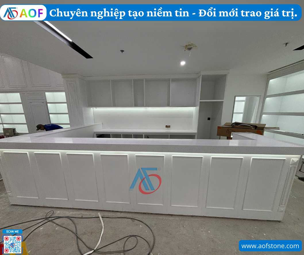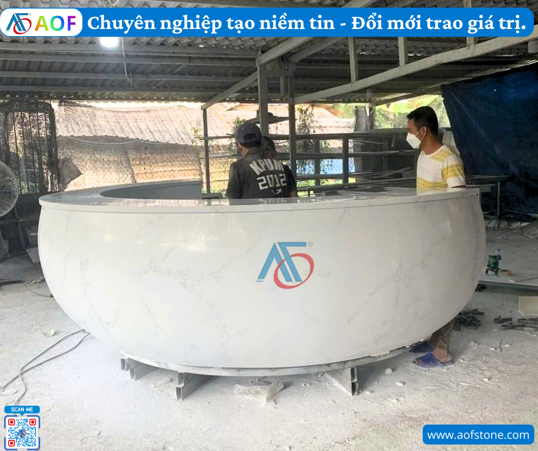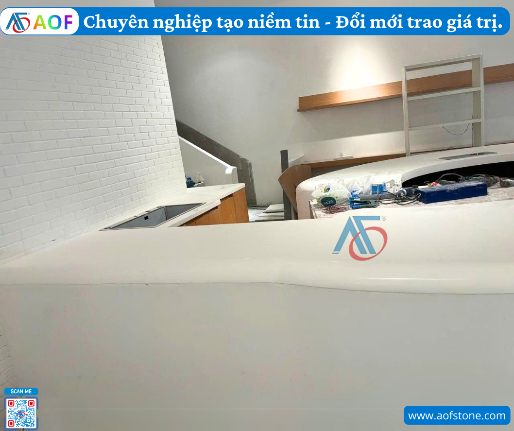 Một trong những điểm mạnh của vật liệu solid surface là khả năng tùy biến thiết kế. Tại Ninh Thuận, các công ty nội thất như AOF đã cập nhật mẫu thiết kế quầy bar solid surface liền khối với nhiều hình dáng, màu sắc và phong cách khác nhau. Khách hàng có thể dễ dàng lựa chọn từ kiểu dáng hiện đại, truyền thống cho đến những mẫu thiết kế độc đáo, sáng tạo phù hợp với không gian sống hoặc kinh doanh của mình.