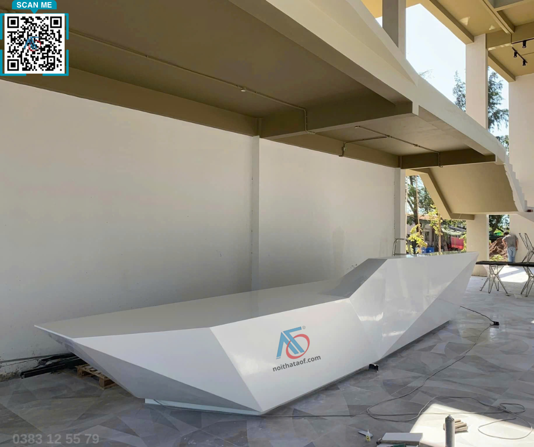 Quầy lễ tân là bộ mặt của doanh nghiệp, là nơi tạo ấn tượng đầu tiên với khách hàng. Chính vì vậy, việc lựa chọn quầy lễ tân từ đá nhân tạo Solid Surface sẽ giúp không gian văn phòng của bạn trở nên ấn tượng, sang trọng và hiện đại hơn bao giờ hết. Nội Thất AOF tự hào là đơn vị uy tín cung cấp giải pháp nội thất từ đá nhân tạo Solid Surface, đảm bảo sẽ mang lại cho doanh nghiệp của bạn không gian làm việc chuyên nghiệp, hiện đại và bền vững.