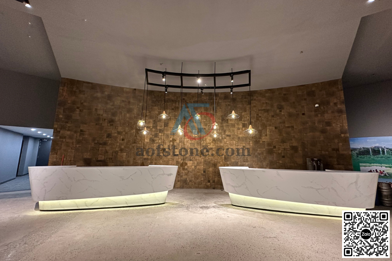 Nội thất AOF chuyên thi công hoàn thiện các sản phẩm về đá Solid Surface làm mặt đá lavabo, chậu rửa Lavabo, mặt bếp, bàn đảo, quầy lễ tân,bồn tắm,…Các sản phẩm về đá nhân tạo solid surface luôn được đảm bảo về chất lượng, màu sắc sang trọng, thi công nhanh chóng, bảo hành sản phẩm 5 năm.